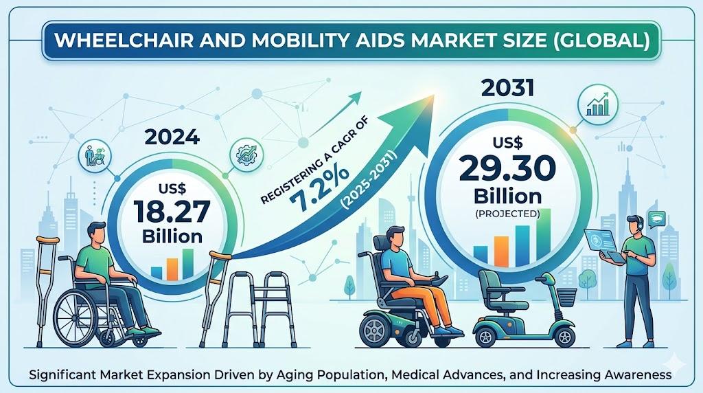 The North American wheelchair and mobility aids market is projected to grow steadily through 2031, driven by demographic changes and technological adoption: