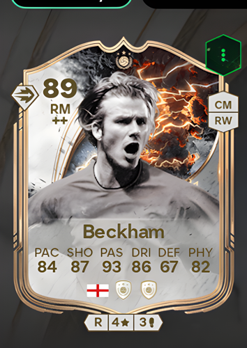 David Beckham's Icon card is a formidable Right Midfielder boasting an overall rating of 89, with standout attributes including a superb 93 passing, a sharp 87 shooting, and solid 84 pace. As a winger, this card excels in delivering pinpoint crosses and set-pieces, allowing you to expertly orchestrate attacks from the flank. His exceptional vision and accuracy can swiftly dismantle the opposing defense, creating decisive scoring opportunities to clinch victory in the game.