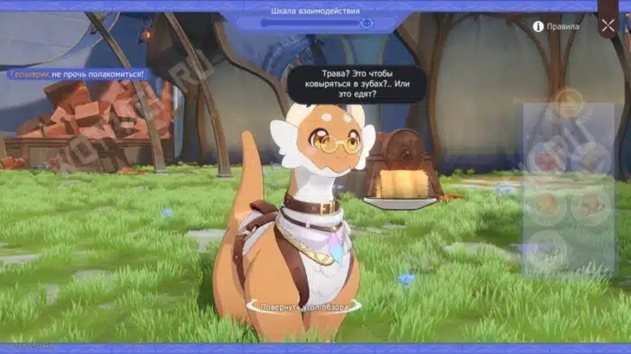 Nachdem du auf einen neugeborenen Dinosaurier triffst, ist es an der Zeit, seine Entwicklung zu begleiten. Zunächst kannst du die Priesterinnen von Hyacin um Unterstützung bitten, die sich liebevoll um das kleine Wesen kümmern. Bevor sie mit der Erziehung beginnen, wählen sie gemeinsam einen passenden Namen für das Jungtier aus. Du kannst dabei eine der folgenden Optionen verwenden: „Lasttier“, „Geosaurus“, „Geosavrishche“ oder vielleicht fällt dir selbst ein passender Name ein? Falls dir nichts einfällt, schlage doch vor: „Lass uns an etwas anderes denken…“.