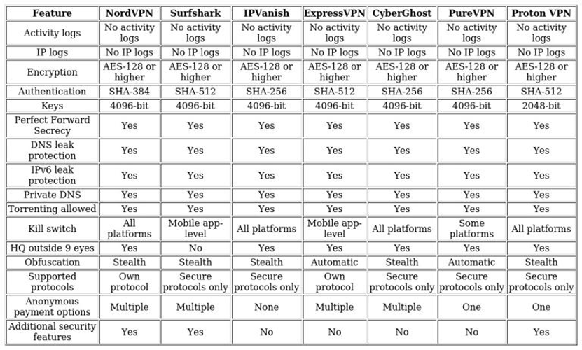 Security and privacy were audited across many factors, including encryption strength, leak protection, and logging policies.