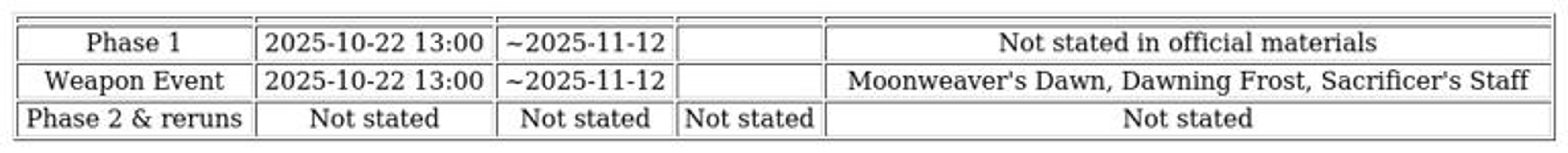 In terms of banner availability, there are no significant reruns scheduled concurrently with Luna II, making Nefer the flagship dendro addition for this update. Standard gacha rules apply, with a soft pity at 90 pulls and a 50/50 chance on the first loss unless protected. For those lacking dedicated dendro characters, Nefer is a valuable addition, especially with fallback options like Sacrificer's Staff and Dawning Frost weapons.