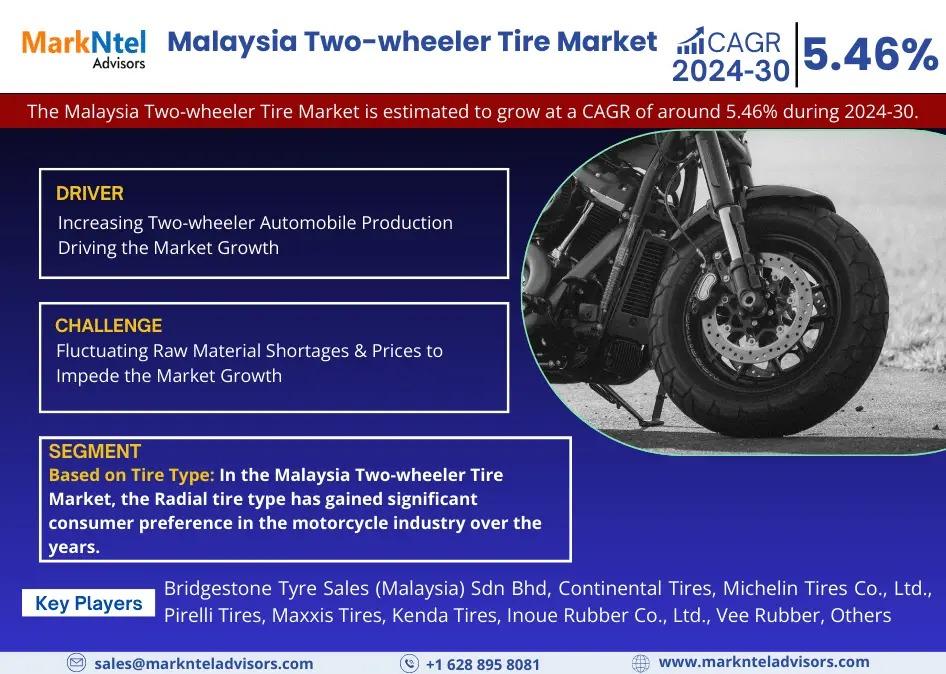 MarkNtel Advisors, a leading market research and consulting firm, has announced the release of its latest study titled Malaysia Two-wheeler Tire Market Research Report: Forecast (2024-2030). This report provides a detailed assessment of the Malaysia Two-wheeler Tire Market, covering its evolving dynamics, emerging trends, key growth drivers, major challenges, and competitive landscape.