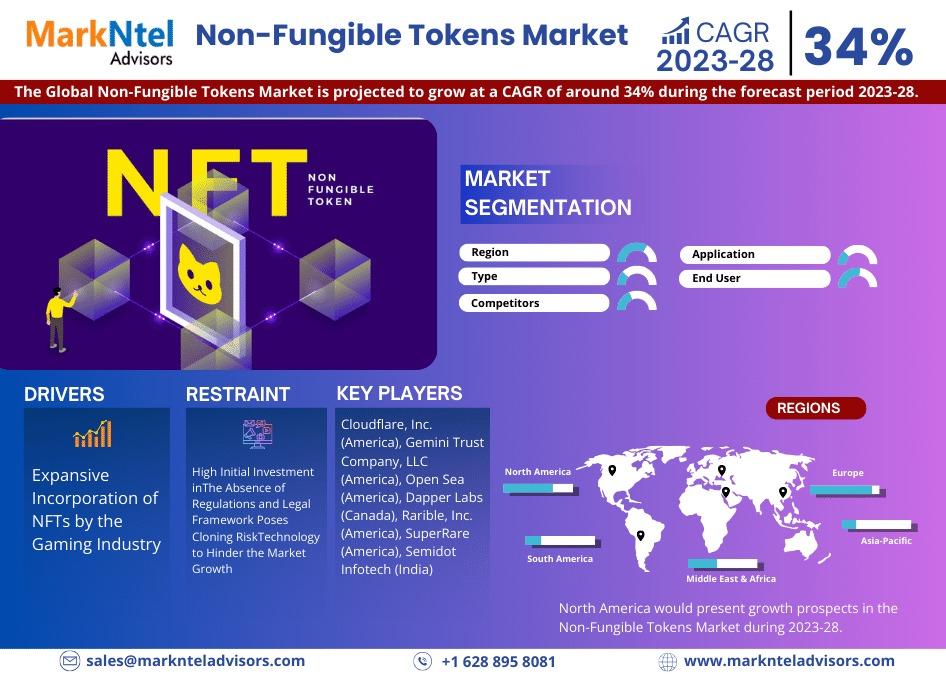 MarkNtel Advisors, a leading market research and consulting firm, has announced the release of its latest study titled Non-Fungible Tokens Market Research Report: Forecast (2023-2028). This report provides a detailed assessment of the Non-Fungible Tokens Market, covering its evolving dynamics, emerging trends, key growth drivers, major challenges, and competitive landscape.