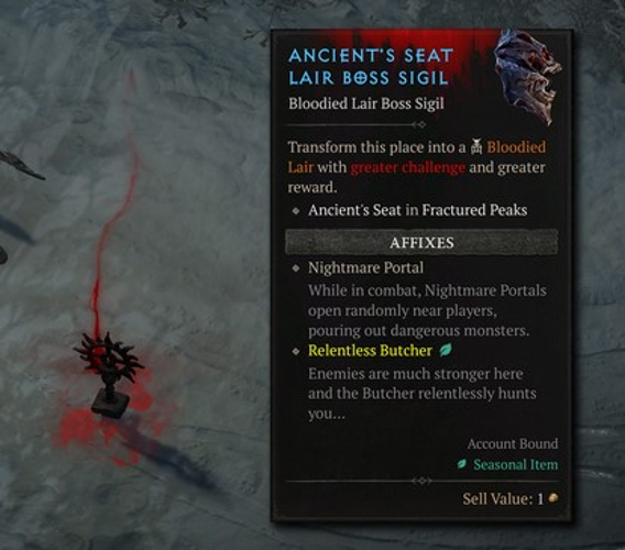 This mechanic does not replace the standard butcher spawn chance; instead, there's a possibility of encountering both butchers simultaneously, amplifying the threat. Engagements with bloodied sigils are designed to be approximately one difficulty tier higher than your current torment level, offering a formidable test for seasoned players.