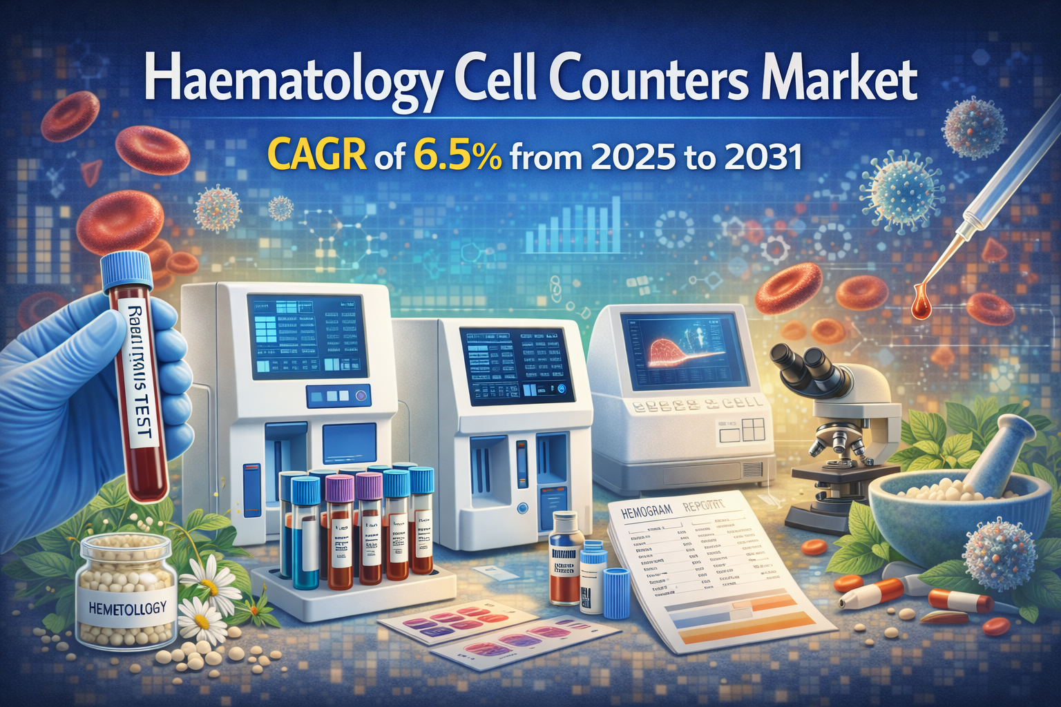 The Haematology Cell Counters Market is projected to register a CAGR of 6.5% from 2025 to 2031, reflecting steady growth driven by rising diagnostic demand, technological innovation, and expanding healthcare infrastructure worldwide. Haematology cell counters play a crucial role in blood analysis, enabling accurate counting and classification of blood cells for the diagnosis of various hematological disorders. With increasing emphasis on early disease detection and preventive healthcare, the adoption of advanced hematology analyzers continues to expand across clinical and research settings.