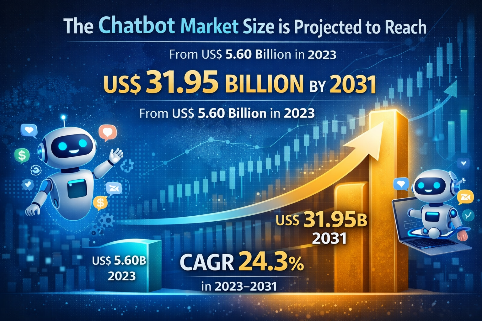 The chatbot market is witnessing strong expansion, with its value projected to increase from US$ 5.60 billion in 2023 to US$ 31.95 billion by 2031, registering a CAGR of 24.3% during the forecast period. This growth reflects the rising importance of conversational automation in business operations and customer engagement strategies. Chatbots are software applications designed to simulate human conversation through text or voice interactions. They help organizations provide real time assistance, automate repetitive tasks, and improve service efficiency. The growing preference for messaging platforms and the need for continuous customer support are driving widespread adoption across industries.