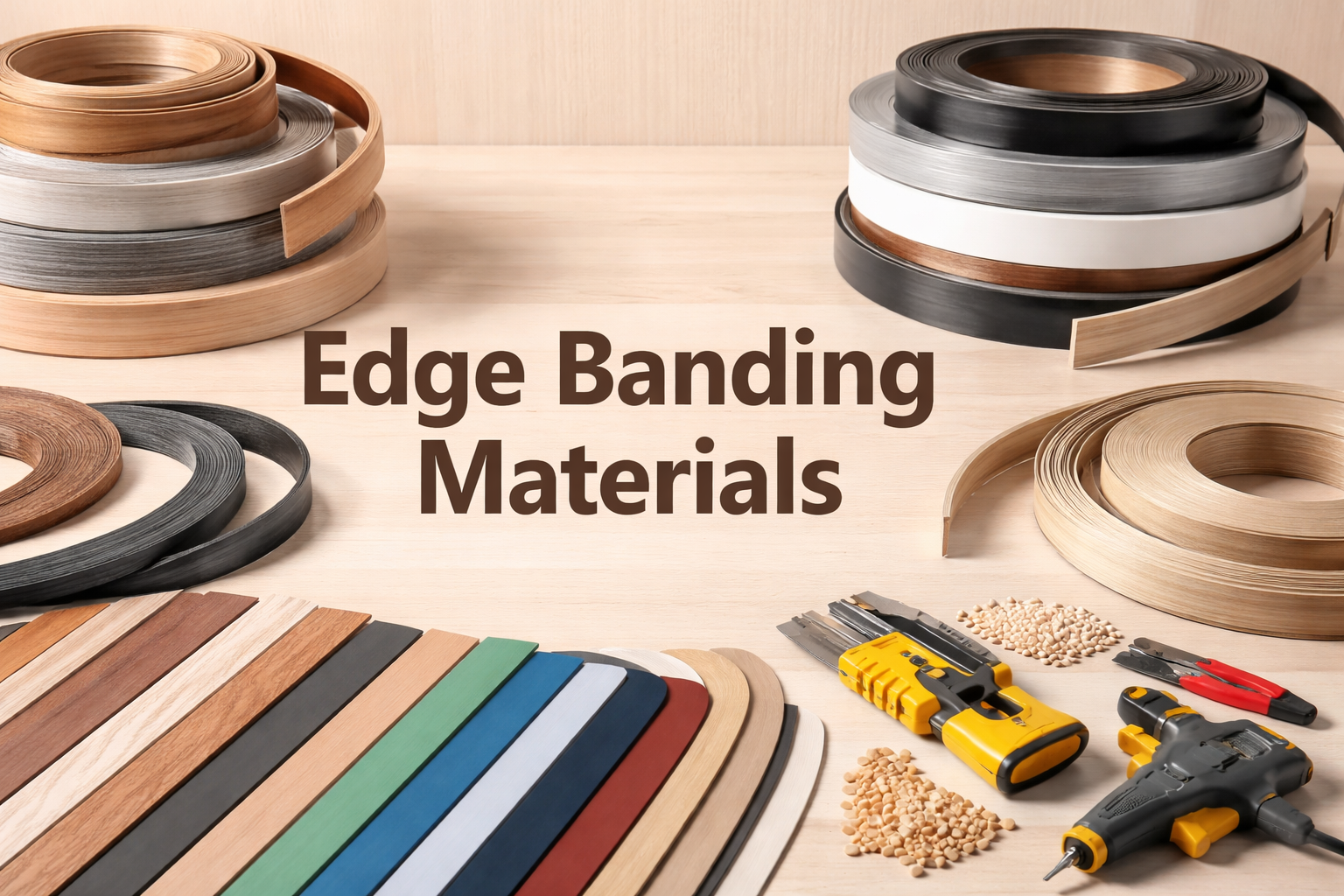 Edge banding materials are used to cover exposed edges of furniture panels to enhance durability, moisture resistance, and visual appeal.